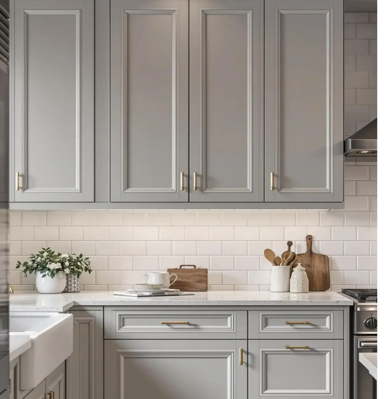 Refresh your kitchen without replacing your cabinets. We prep, refinish, and apply a smooth sprayed finish for a clean, modern look — at a fraction of the cost of new cabinetry.